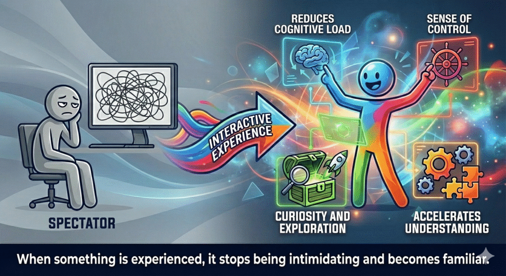 In a world saturated with new tools, platforms, and solutions, the real barrier to adoption isn’t technical — it’s human. People adopt faster what they can see, explore, and interact with, and that’s where interactive experiences become essential.